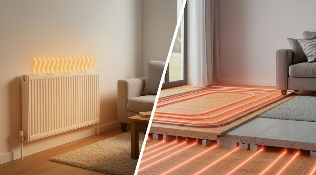 أما من حيث طريقة توزيع الحرارة، فلكل نظام خصوصيته. الرادياتورات تبقى الخيار الأبسط والأكثر استعمالًا، لأنها سهلة التركيب وسريعة الاستجابة. التدفئة الأرضية، من جهة أخرى، تمنح راحة عالية بفضل توزيعها المتجانس للحرارة، لكنها تحتاج إلى استثمار أولي أكبر. أما نظام Fan Coil، فهو حل مرن يجمع بين التدفئة والتبريد، ويُستعمل كثيرًا في المشاريع الحديثة.