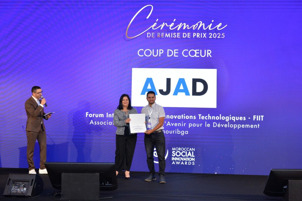 L’Association AJAD a eu l’honneur de recevoir le Prix du Jury lors du “Moroccan Social Innovation Award – MSIA 2025”, pour son initiative “Forum International des Innovations Technologiques – FIIT”, dans le cadre du Forum Wexchange, 4ᵉ édition, organisé par la Fondation Abdelkader Bensalah le 21 octobre 2025 à l’hôtel Marriott Casablanca.